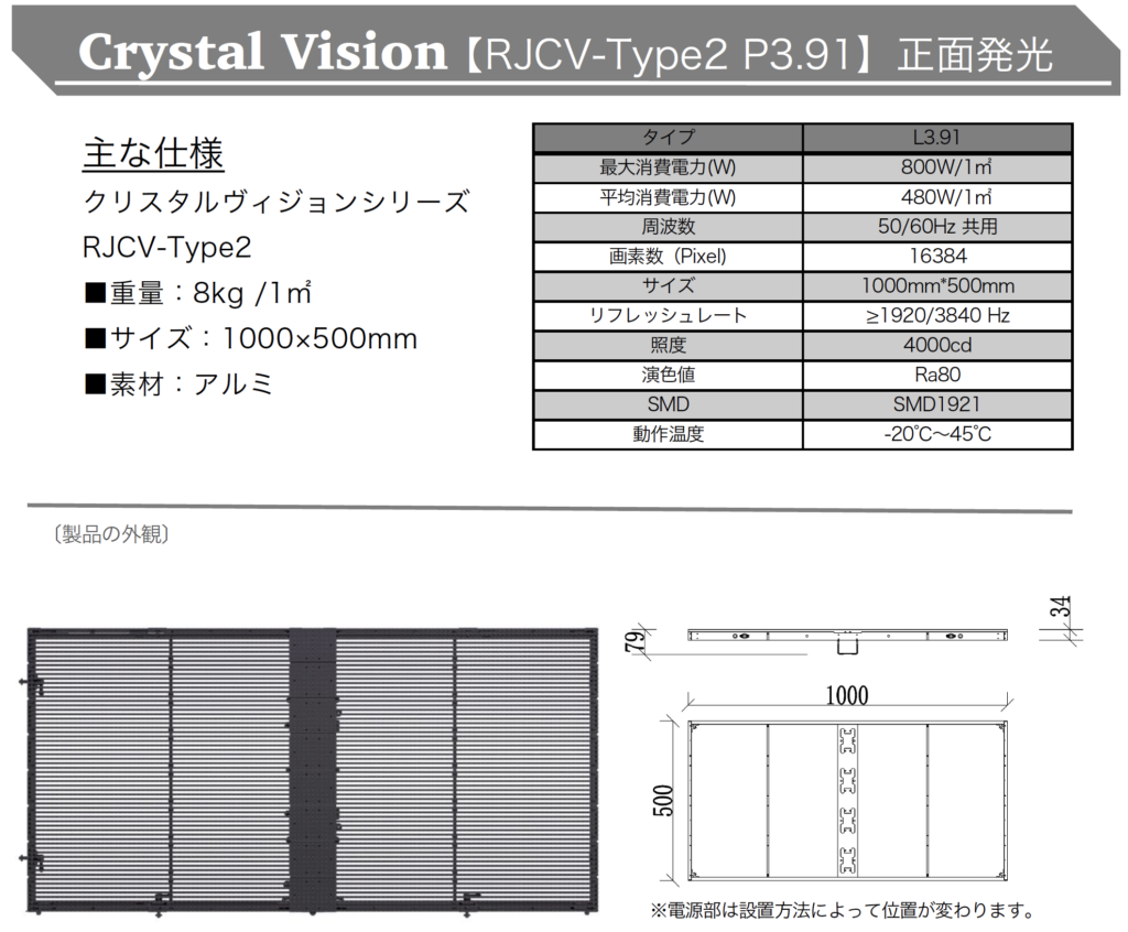 施工するビジョンのサイズによりご契約アンペアの変更および、要電気工事製品の為、