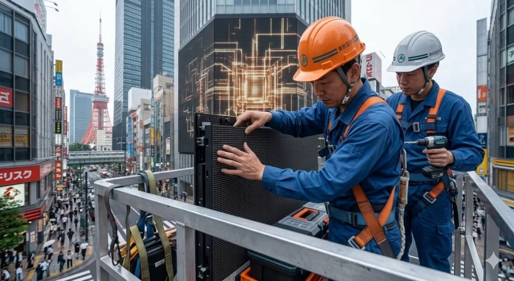 渋谷の目抜き通りでの作業には道路使用許可も必要で、1回の修理に技術料込みで50万円以上の見積もりが届きました。結局、予算が通らず、数ヶ月間ドットが抜けたまま(歯抜け状態)で放置することに。クライアントからは『ブランドイメージが下がる』とお叱りを受け、広告媒体としての価値を失ってしまいました。」